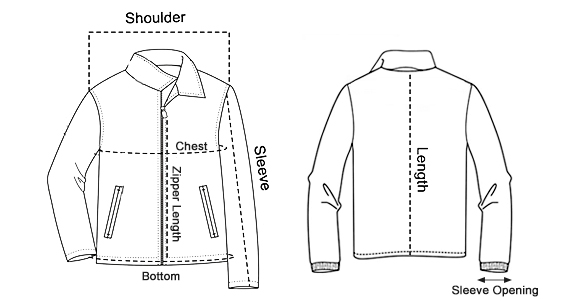 | Zipper Length | 22.5″ | 23.3″ | 24.3″ | 25.3″ | 26.3″ |