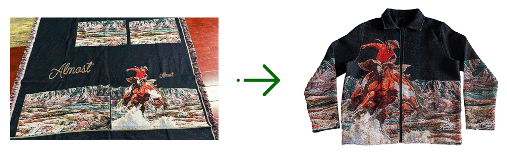 Process: Program looms with your mapped design → Weave colorfast yarn-dyed fabric Key fact: *“Colors woven IN, not printed ON – lasts 50+ washes”*